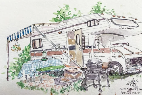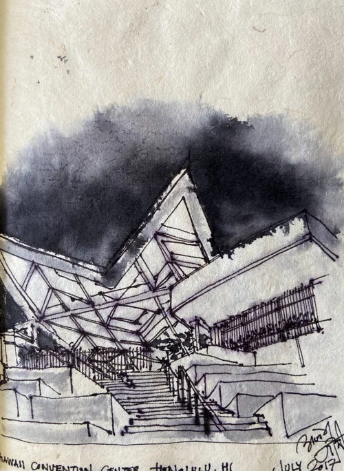 Urban sketches on different media: watercolor, ink on Nepali paper, ipad procreate